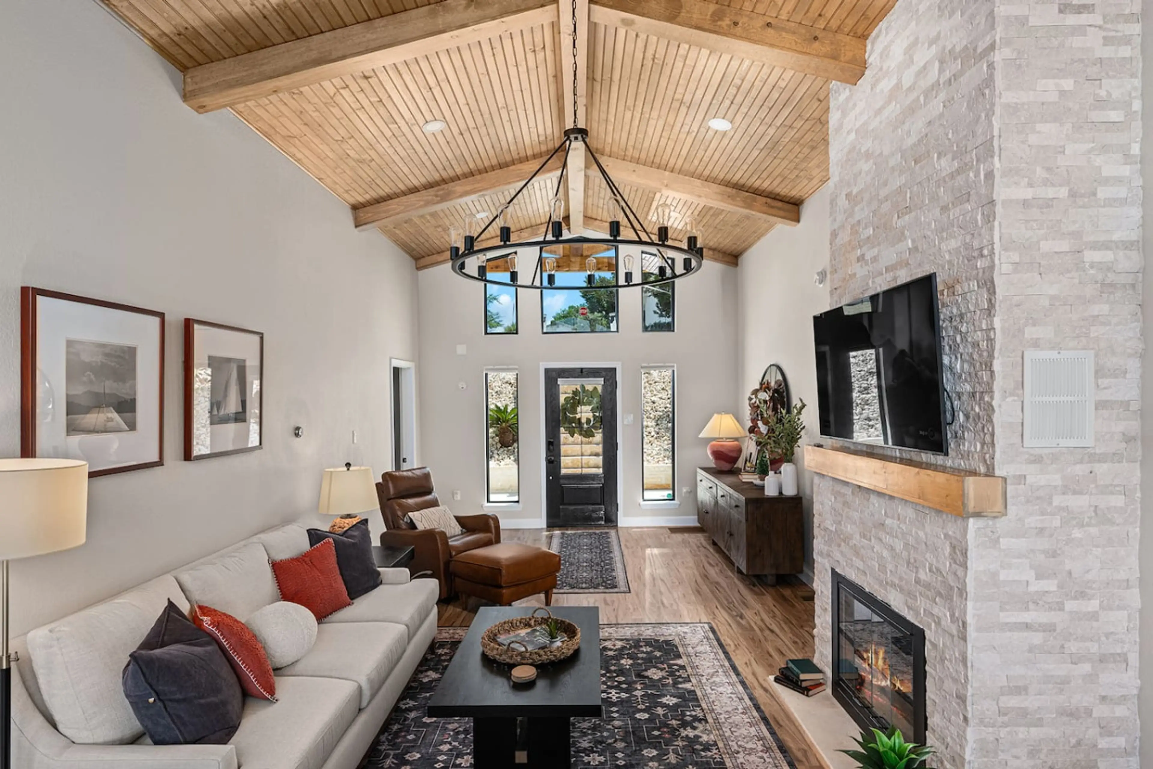 The Nest at Canyon Lake – Just 8–10 mins from the amphitheater, zip lines, and mountain coaster! This freshly remodeled two-story home offers two living areas perfect for multi family or friend getaways. 2 kitchens, 5 bedrooms, 3 bathrooms, 2 large decks with lake views. Enjoy 2 fire pits, a gas gri...